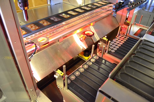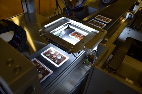 During the initial in-feeding process, coins are housed in trays as they enter the machine to be indexed for picking.