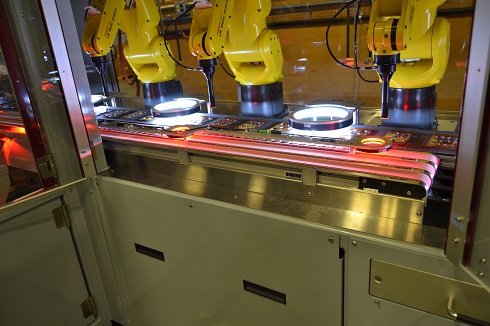 The entire machine system uses 13 vision-guided robots and 22 Dorner conveyors.